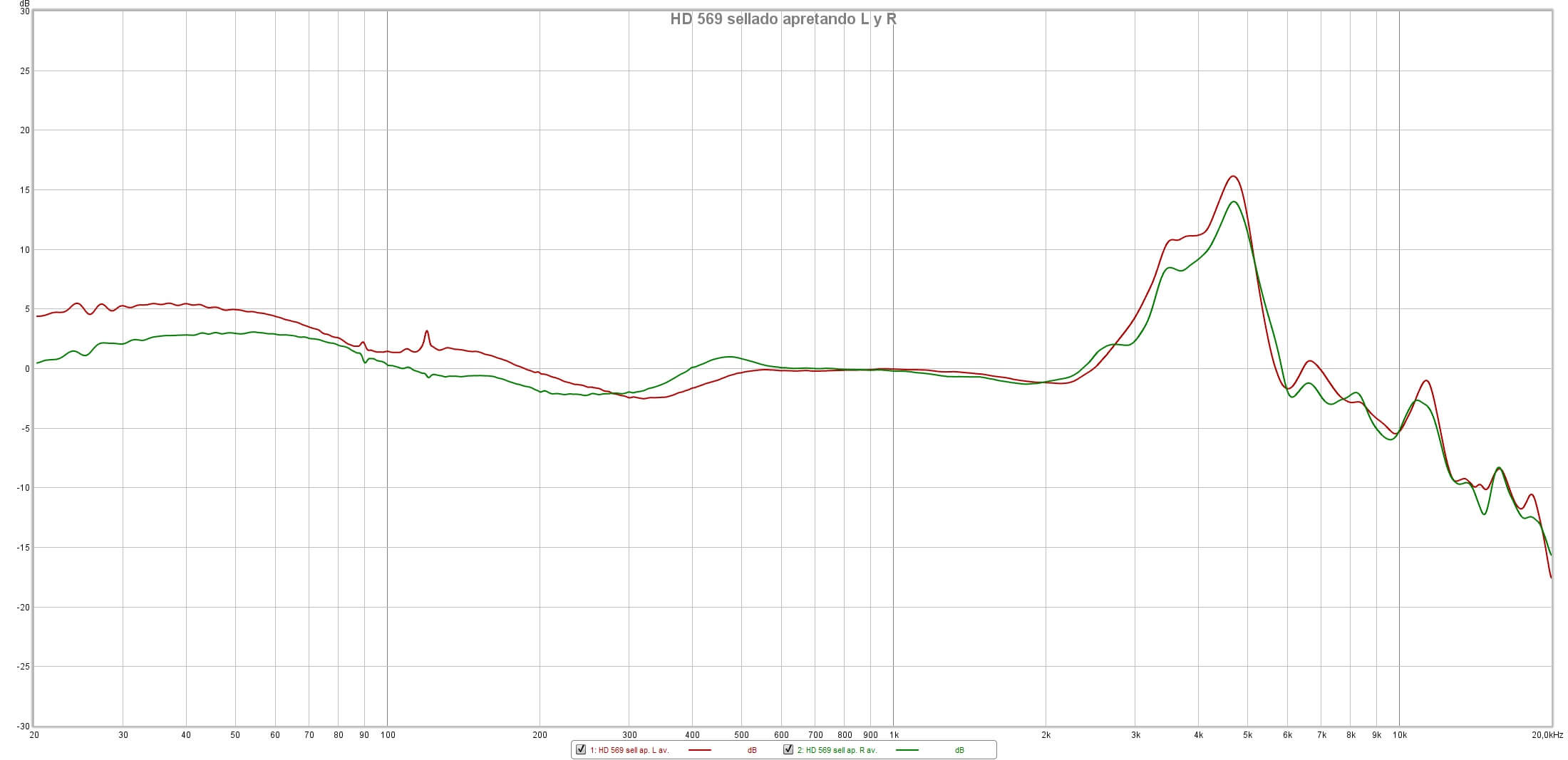 Sennheiser HD 569: sellado apretando, canales L (rojo) y R (verde).