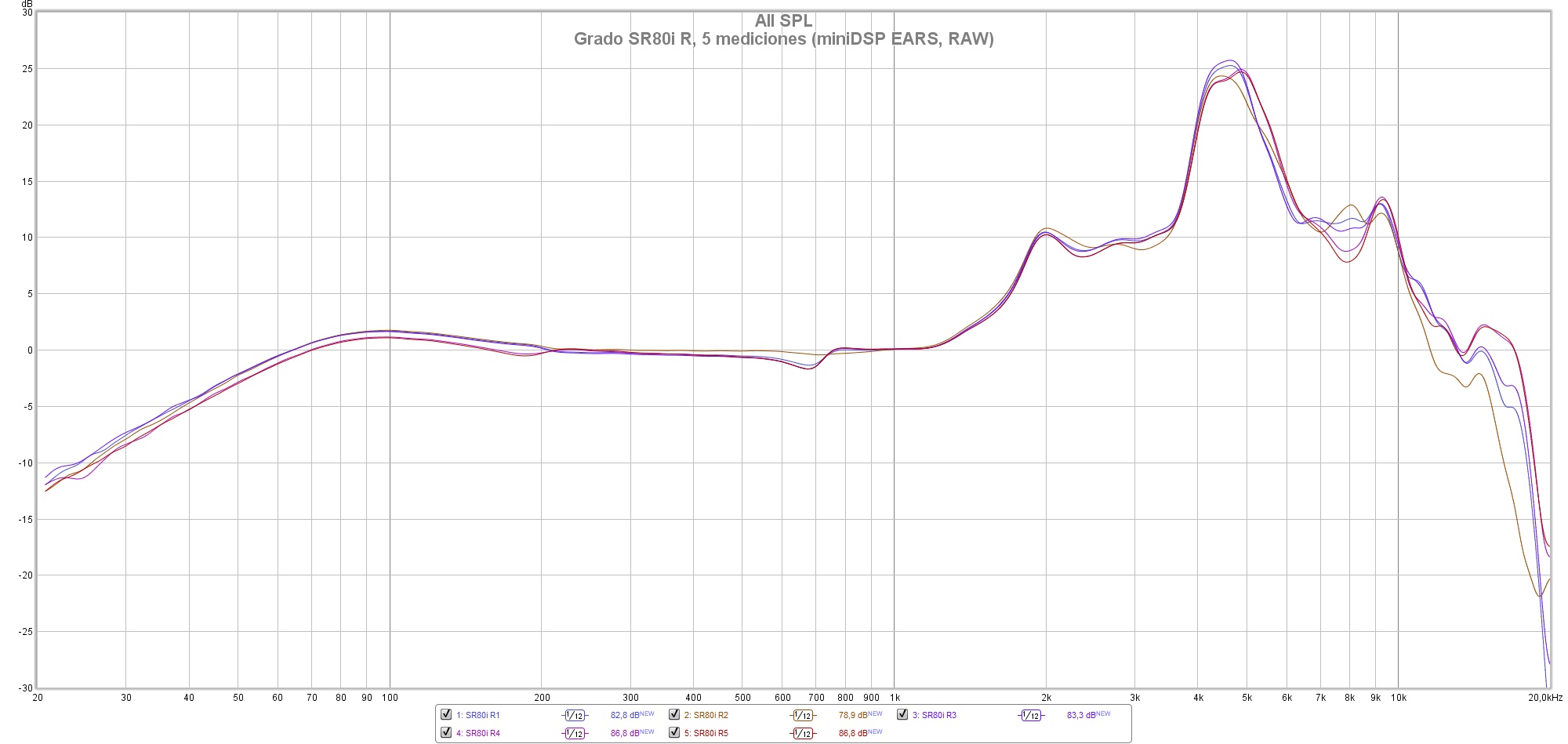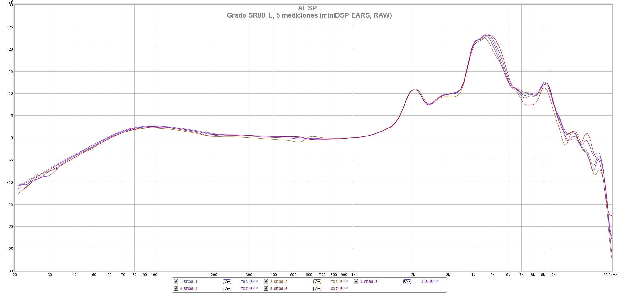 En cuanto a respuesta en frecuencia tienen una presentación muy similar a los otros Grado que he escuchado: un sonido bastante coloreado y que parece en U, resultando en unos auriculares muy inmersivos y excitantes, de sonido atractivo que puede tanto hacernos disfrutar muchísimo como hartarnos rápidamente.