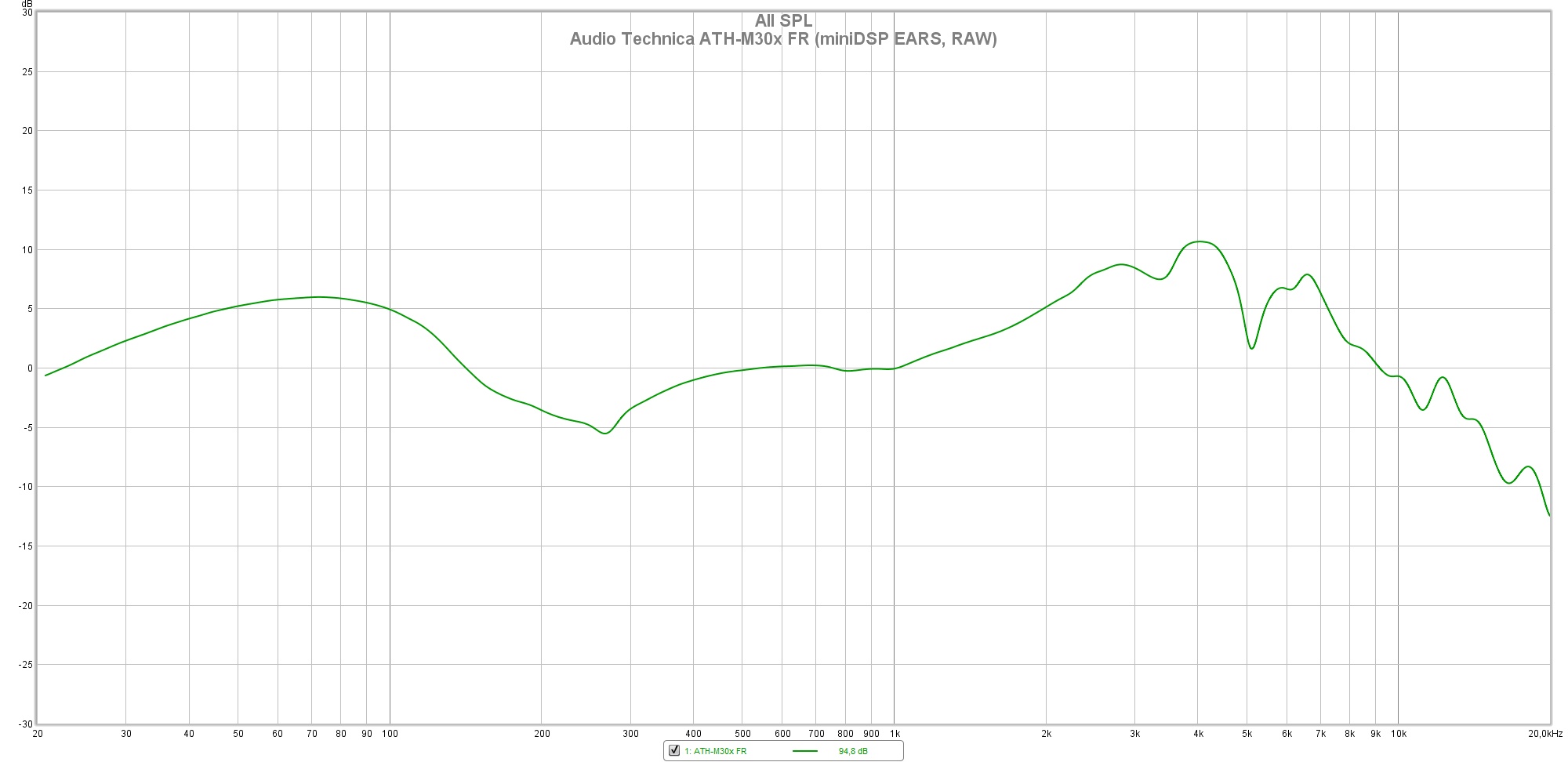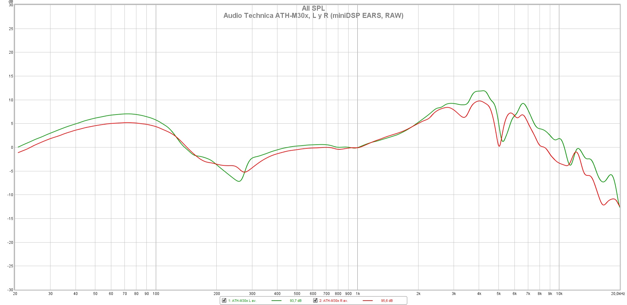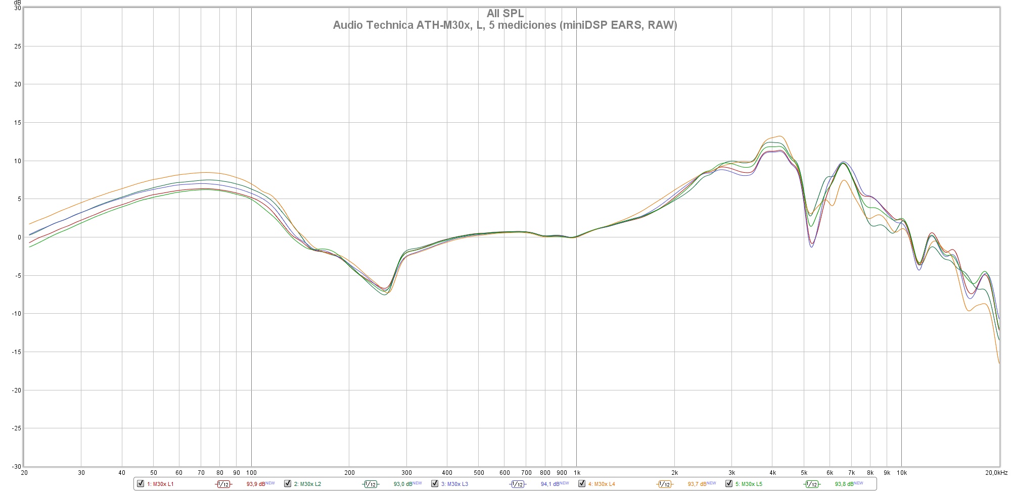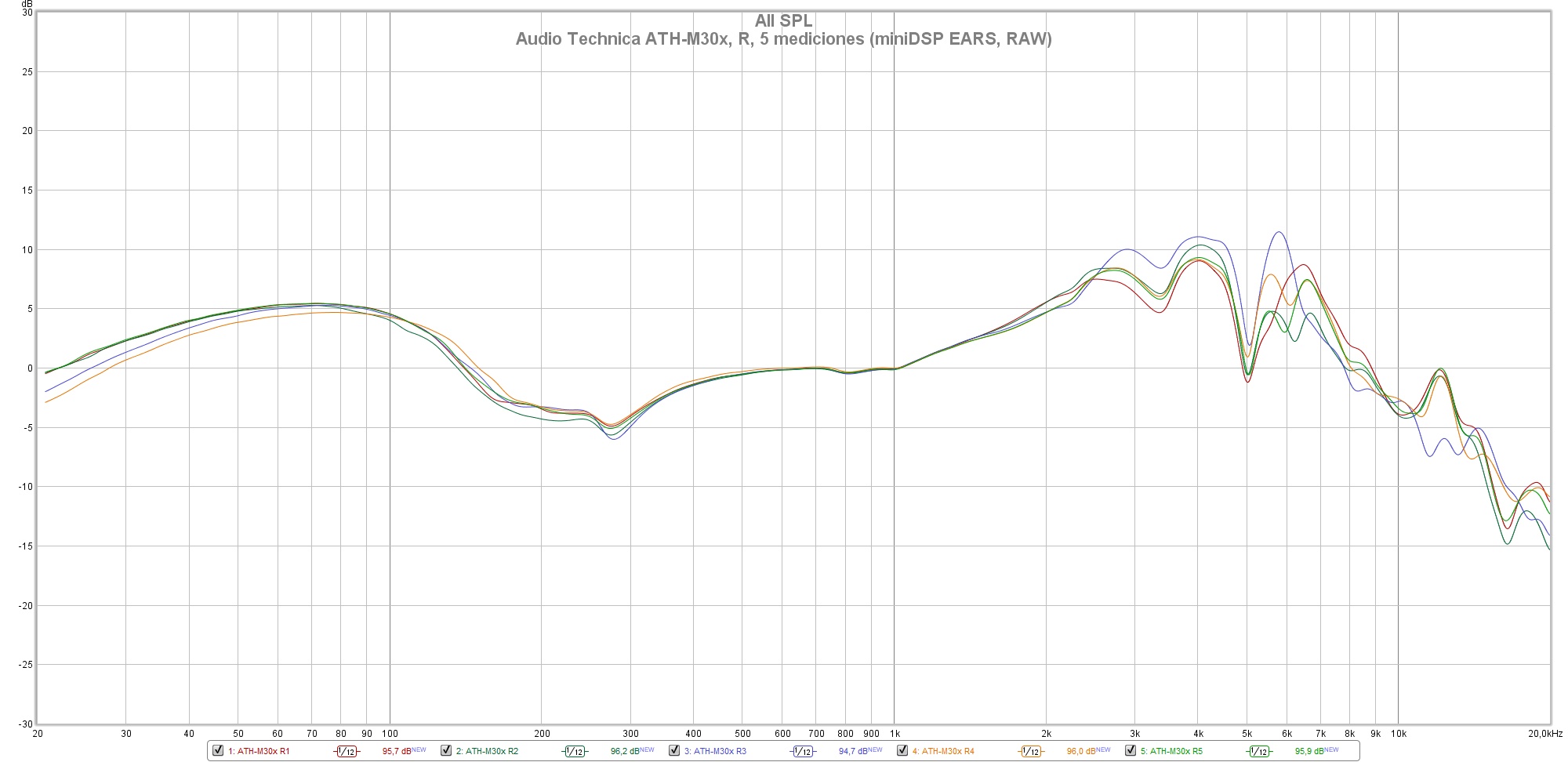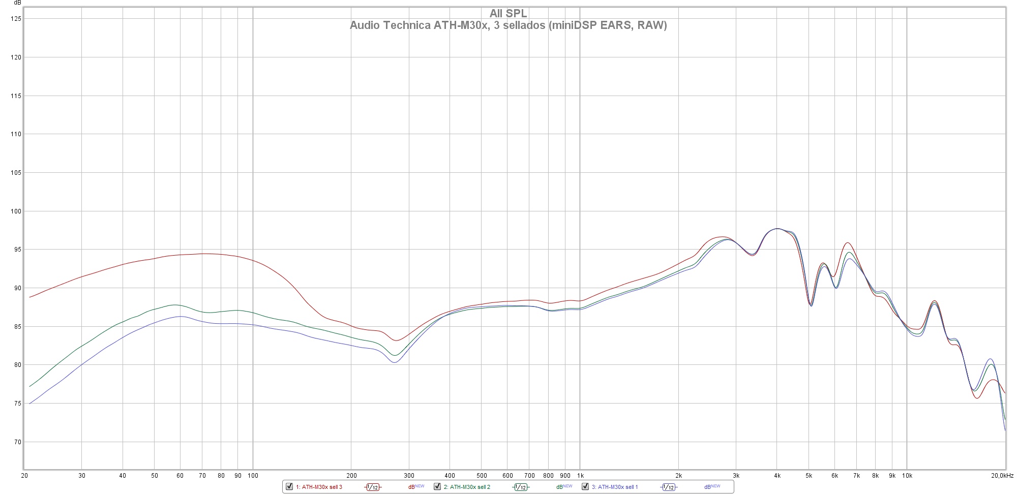 Las siguientes mediciones están realizadas con el miniDSP EARS y el Room EQ Wizard sin aplicar ninguna curva de compensación, no deben ser tomadas como medidas absolutas y han de valorarse con precaución.