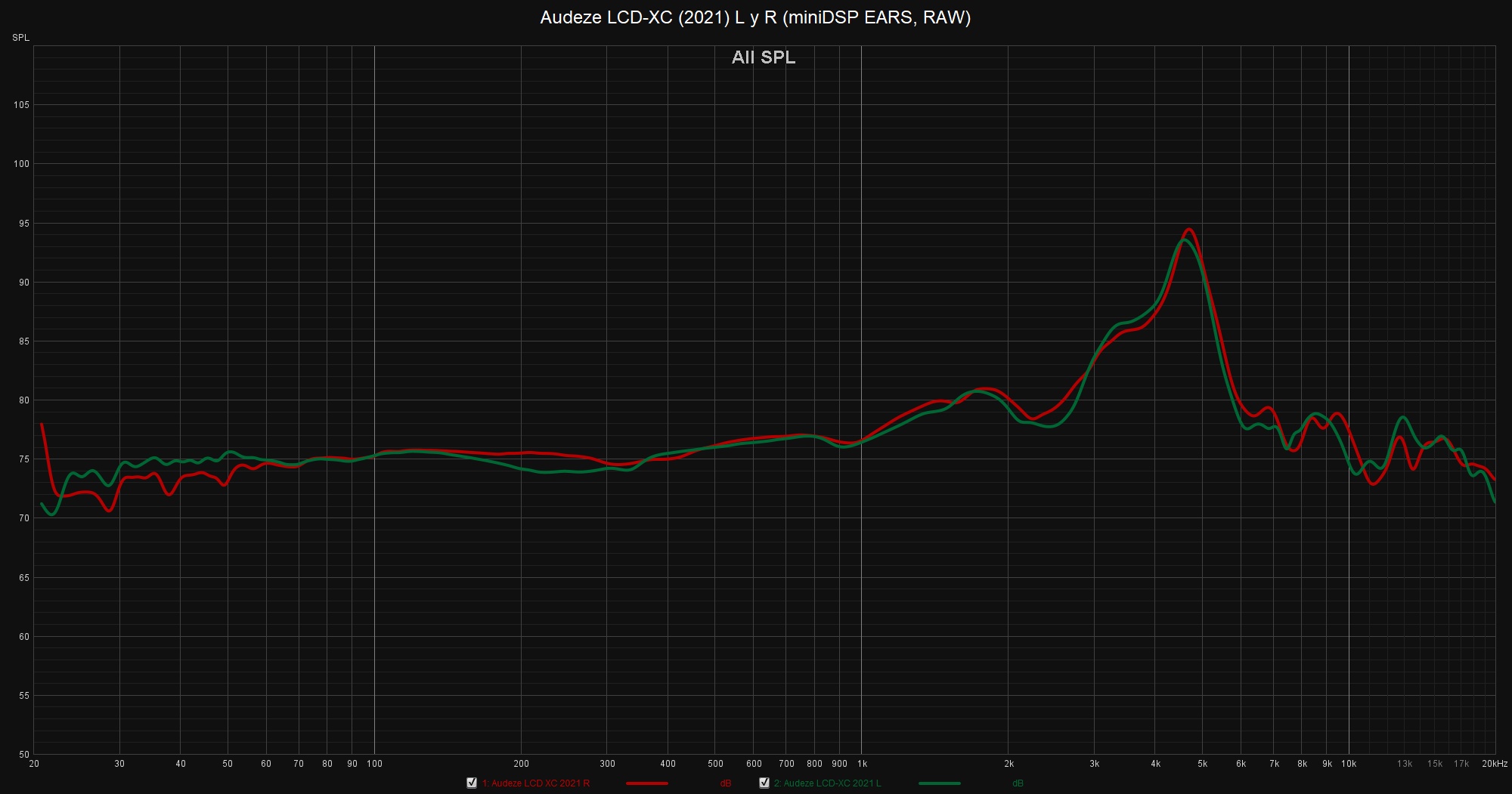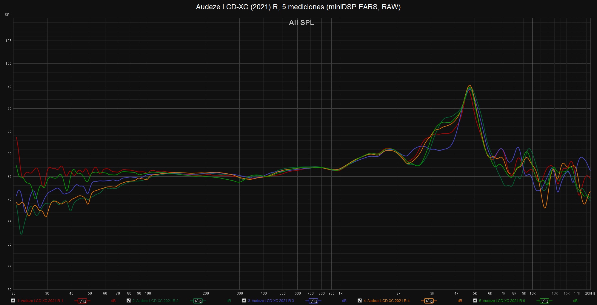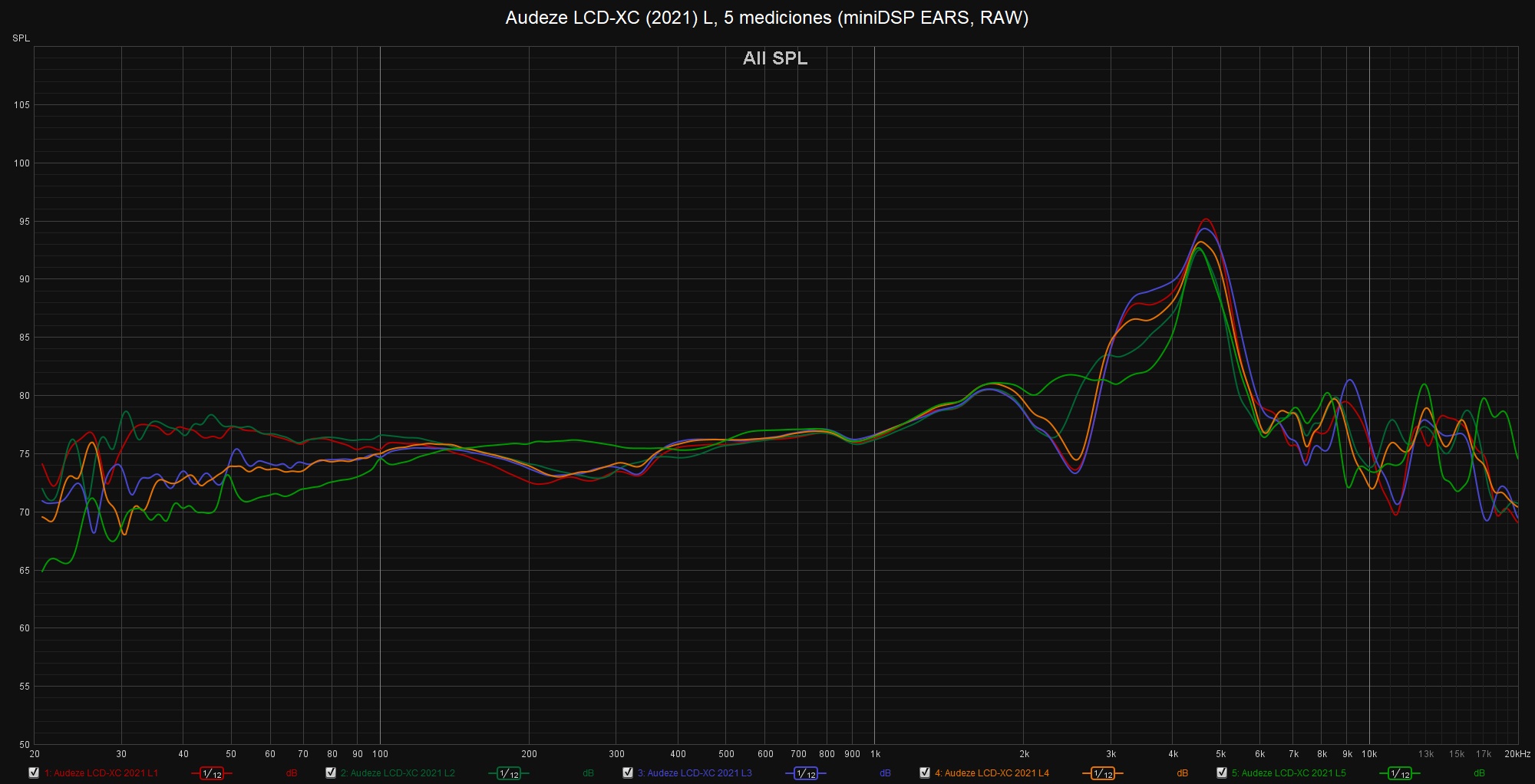Las siguientes mediciones están realizadas con el miniDSP EARS y el Room EQ Wizard sin aplicar ninguna curva de compensación, no deben ser tomadas como medidas absolutas y han de valorarse con precaución.
