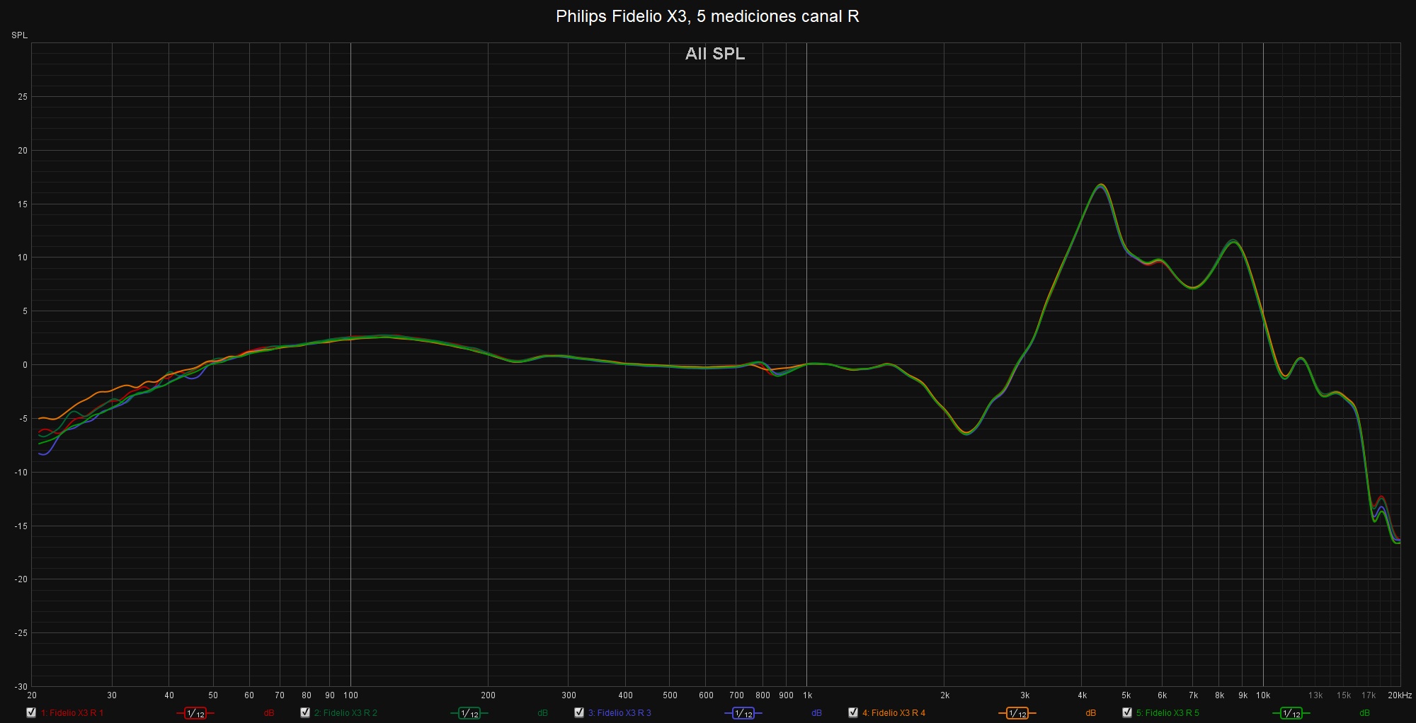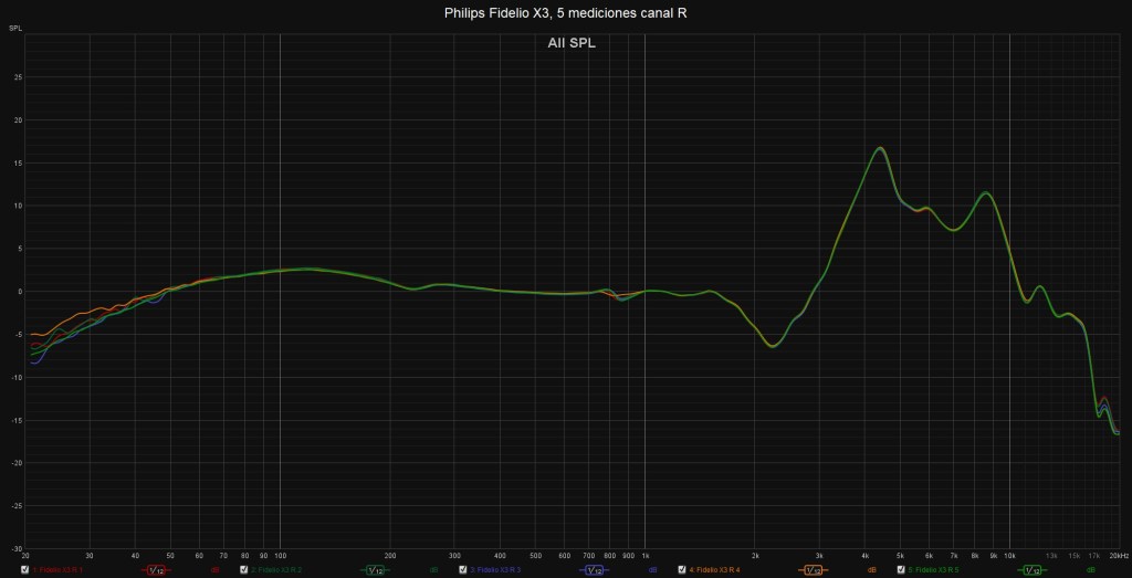 Las siguientes mediciones están realizadas con el miniDSP EARS y el Room EQ Wizard sin aplicar ninguna curva de compensación, no deben ser tomadas como medidas absolutas y han de valorarse con precaución. Para mí su principal uso, ya que no es un aparato de medición estandarizado en la industria, es comparar las mediciones de los distintos auriculares que caen en mis manos.