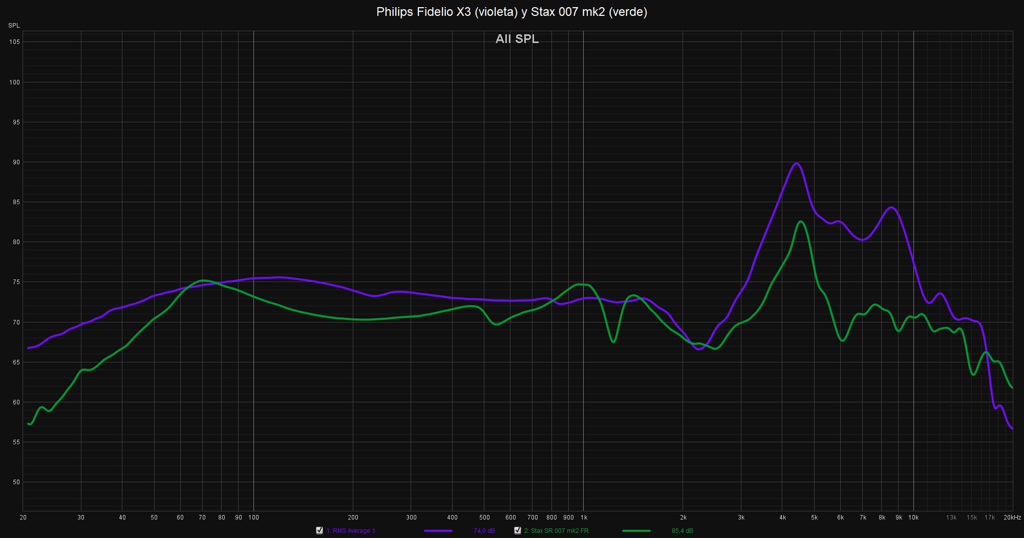 Me llama la atención que no me resulten más metálicos esos agudos sobre todo si los comparo en mis mediciones de otros auriculares como los Stax 007 mk2 a los que estoy muy acostumbrado. Quizás pudiera ser por su menor dinámica y articulación pero no estoy seguro.