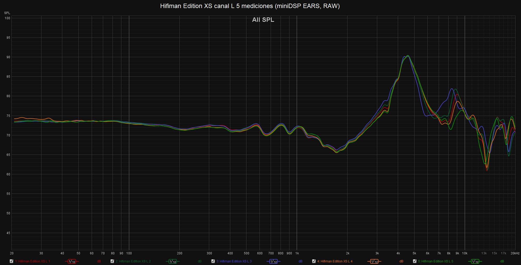 Las siguientes mediciones están realizadas con el miniDSP EARS y el Room EQ Wizard sin aplicar ninguna curva de compensación, no deben ser tomadas como medidas absolutas y han de valorarse con precaución.