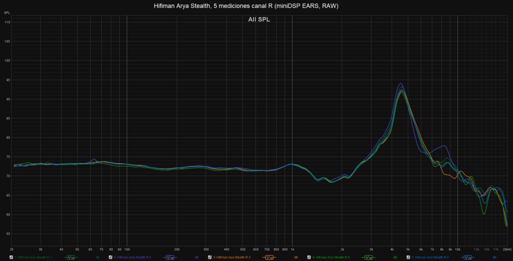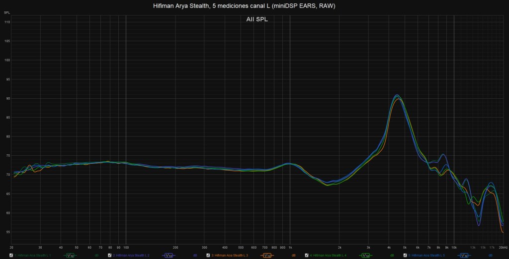 Las siguientes mediciones están realizadas con el miniDSP EARS y el Room EQ Wizard sin aplicar ninguna curva de compensación, no deben ser tomadas como medidas absolutas y han de valorarse con precaución.