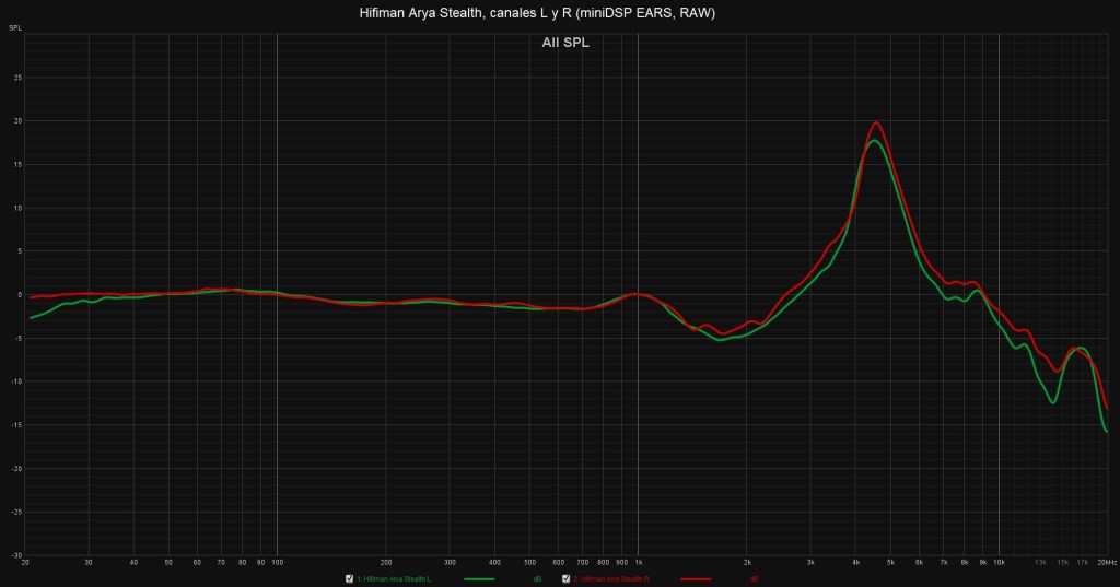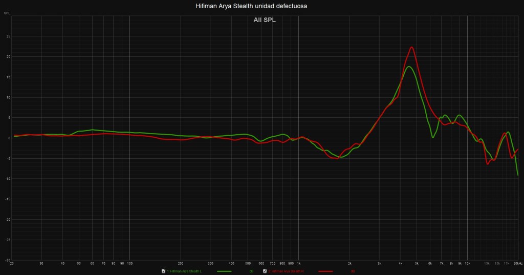Respecto al control de calidad interno de Hifiman, la primera unidad que compré tenía un desequilibrio entre ambos canales considerable y bastante audible como se puede apreciar en la gráfica que dejé más arriba.