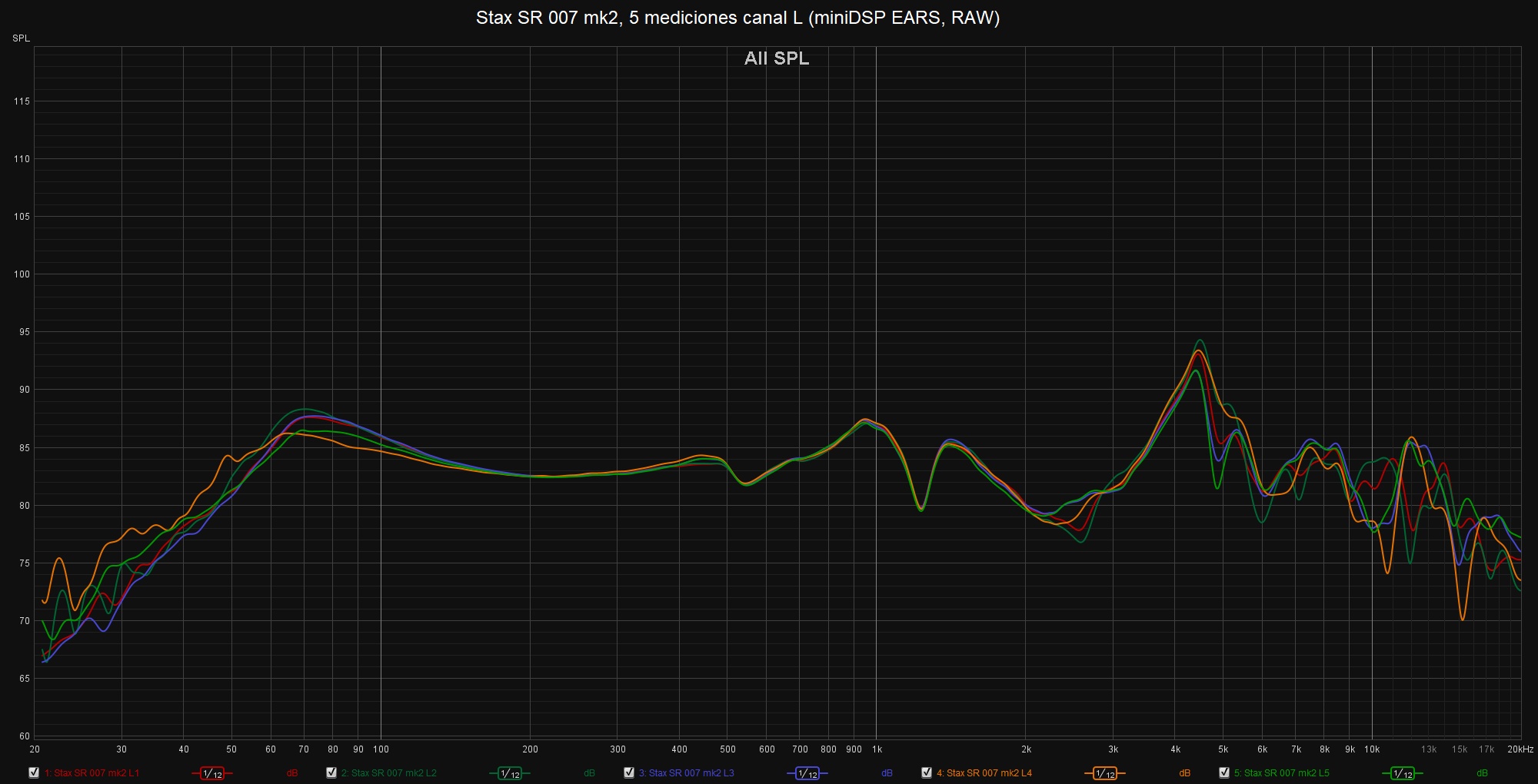 Las siguientes mediciones están realizadas con el miniDSP EARS y el Room EQ Wizard sin aplicar ninguna curva de compensación, no deben ser tomadas como medidas absolutas y han de valorarse con precaución.