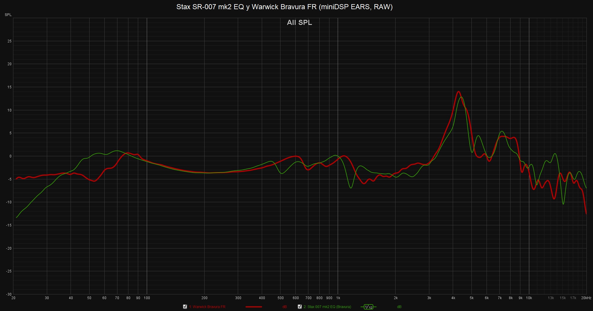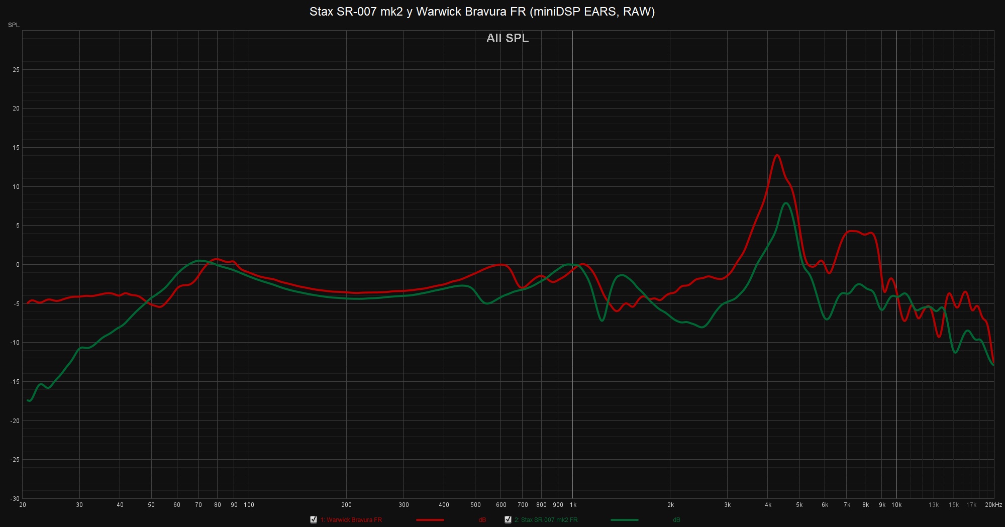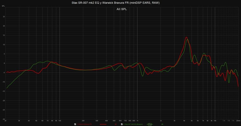 Stax SR-007 mk2 y Warwick Acoustics Bravura FR (miniDSP EARS, RAW).