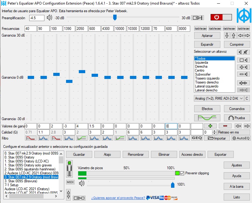 Dejo la configuración empleada en el ecualizador PEACE.