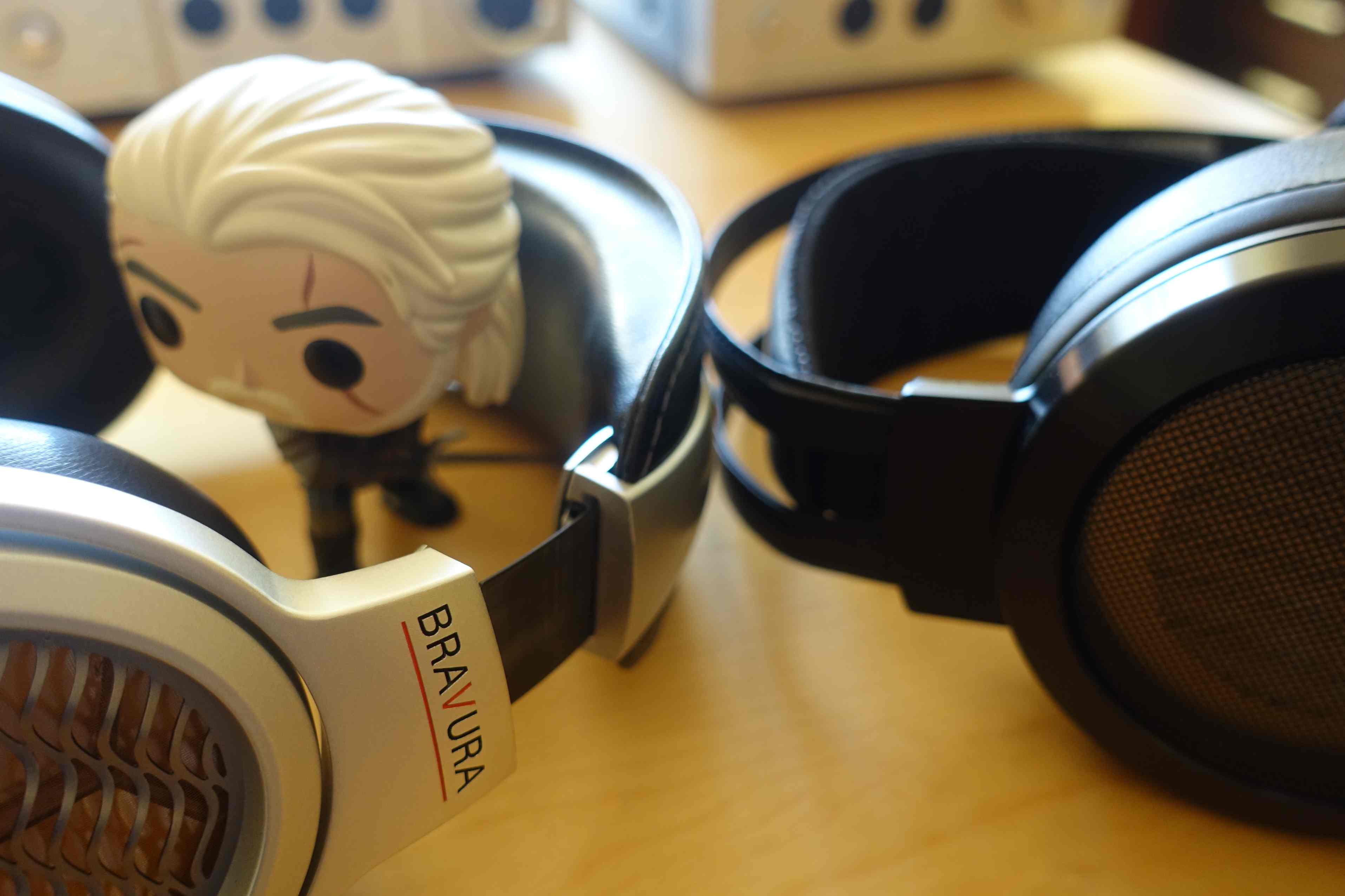 Posicionamiento muy similar en ambos auriculares pero los Stax siguen produciendo mayor sensación de que el sonido te abraza mientras que en los Bravura este es más pequeño y distante.