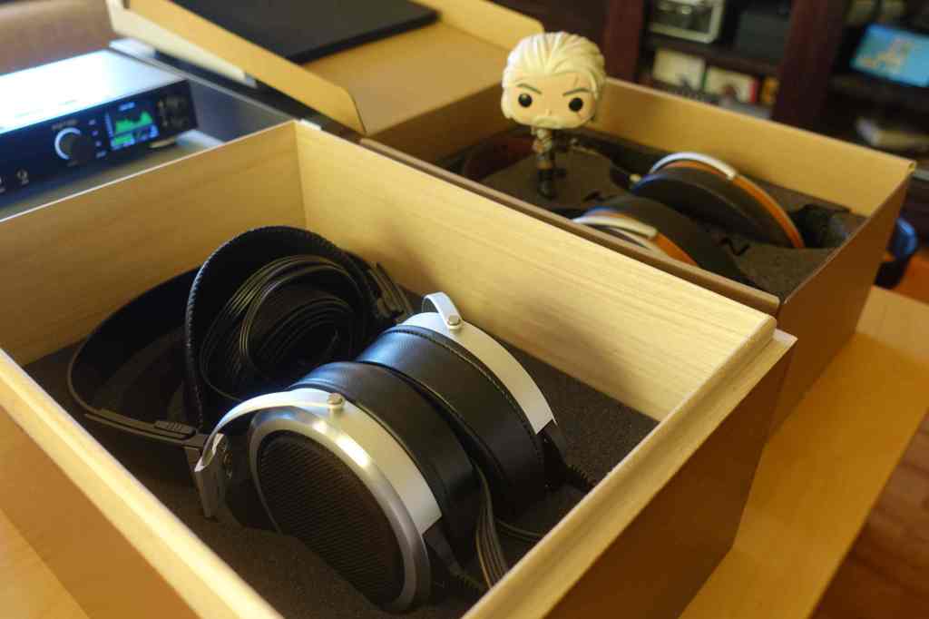 Mientras que los 009S traen su caja de madera los HE1000 incluyen un soporte de foam (para ponerlos erguidos en algún lado) y dos cables (de 6,3 y balanceado XLR de 4 pines).