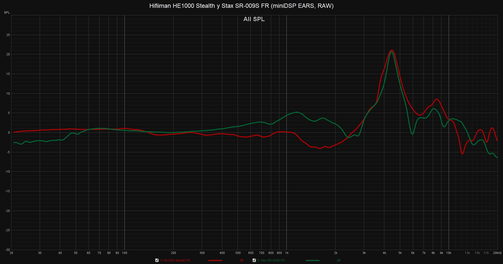 En agudos la mayor elevación de los HE1000 Stealth en 8 kHz podría explicar por qué en ocasiones hay instrumentos como violines que pueden sonar más metálicos que en los Stax.