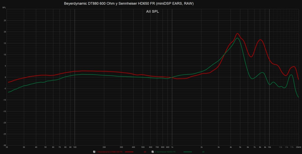 Realmente las mediciones concuerdan bastante bien con lo escuchado excepto que no esperaba esa diferencia tan enorme en los DT880 a partir de los 5 kHz pero bien puede ser que se compense con esos graves y de ahí que en conjunto no suenen tan exagerados.