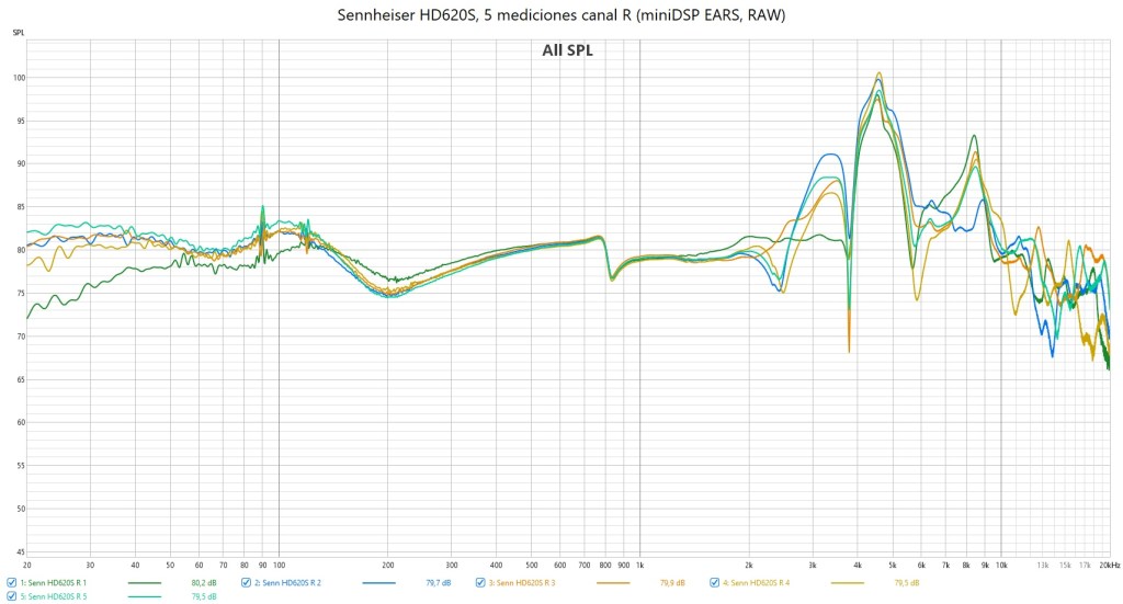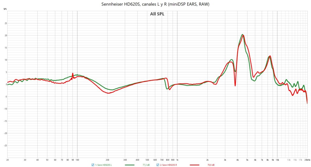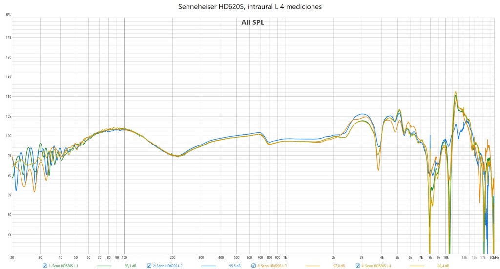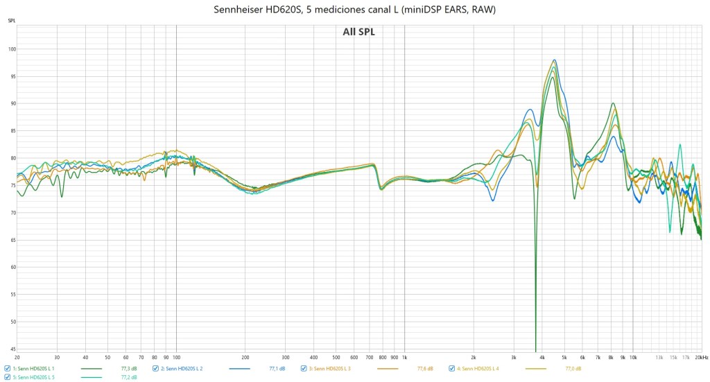Tal como se ve en las mediciones los HD620S tienen una respuesta en frecuencia un tanto extraña con tantas oscilaciones pero que me recuerda un tanto a la de los Dan Clark Audio Expanse o Stealth en el trazado general.