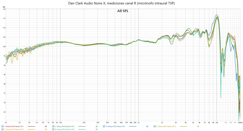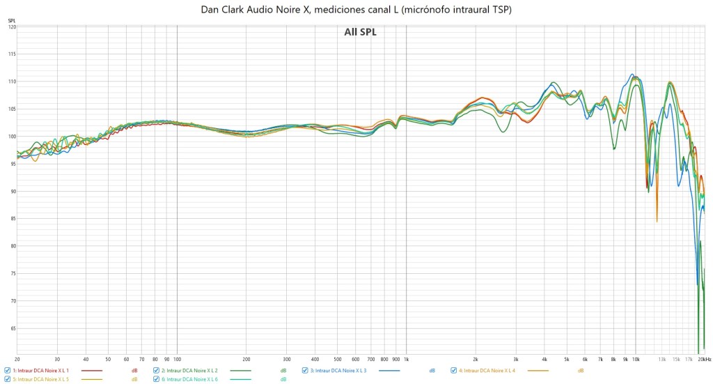 A continuación pongo las mediciones hechas con micrófonos intraurales: