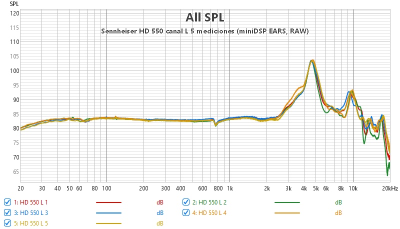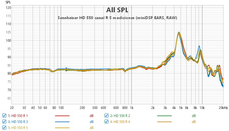 Las siguientes mediciones están realizadas con el miniDSP EARS y el Room EQ Wizard sin aplicar ninguna curva de compensación ni suavizado, no deben ser tomadas como medidas absolutas y han de valorarse con precaución.